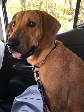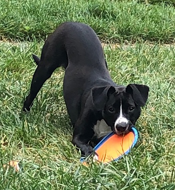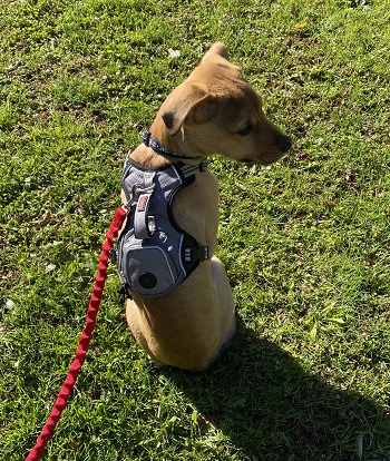 “Dillon is doing amazing. He has learned an array of tricks (beg, tall, jump, rest, come) and is working on playing dead. He's been a great addition to our family. Mostly he spends his days by my side …”